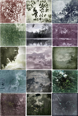 Diese Bilder bestehen aus einzelnen Drucken, die mit Bienenwachs überzogen sind. Dadurch werden sie leicht durchsichtig und erhalten einen schimmernden Glanz.